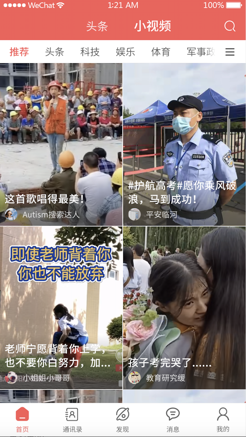 自媒体 –文章,视频,小视频,直播