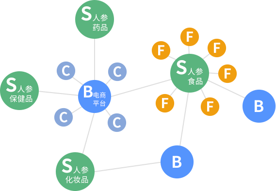 现以“人参产业带”为例,通过打造“中国参谷供应链平台”——S端整合人参药品、保健品、化妆品、食品等相关工厂F,形成产品丰富的供应链,统一对B端的品牌电商平台供货,让人参产品在线化,供终端消费者C选择。多样化的人参产品,再加上政府背书,从而打造“人参在线产业带”!
